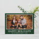 Esta maravilhosa fotografia de Natal tem sua foto favorita, xadrez de búfalos verde e preto, seu nome de família, o ano, e as palavras "Feliz Férias" na frente em branco e uma xadrez de búfalos verde correspondente na parte de trás. A fonte é nítida e limpa, fazer que a placa parece moderna, mas tradicional.