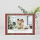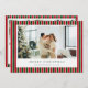 Famílias de amigos desejosos Felizes Feriados com um cartão de Natal listrado vermelho e verde num layout paisagístico mostrando sua família na frente sobre um padrão de listras de Natal vermelho e verde, e um verso com 3 fotos da família e uma nota editável e um ursinho de Natal bonito. Estes cartões de natal de fotos de Natal com faixas laterais horizontais são uma forma perfeita de compartilhar a alegria e os desejos de uma feliz temporada de férias. A coleção BERNARD apresenta uma foto da sua família com uma mensagem de Feliz Feriados na frente e no ano em um serifa clássico em verde. Um verso opcional é incluído com três fotos da família e uma nota, com um padrão vermelho e verde listrado. Um ursinho de pelúcia de Natal bonito é incluído no verso do cartão de feriado vermelho-aquoso e verde-listras numa orientação horizontal.