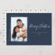 Este simples cartão com fotos de feriado de 7 x 5 acentua sua foto favorita com um mini design de quadro moderno assimétrico. Veja a parte de trás da placa com um padrão moderno de abstrato que se coordena bem com a parte frontal.