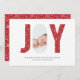 O J e o Y na palavra JOY é um padrão floral vermelho e o O exibe sua foto. A parte traseira da placa apresenta o mesmo padrão floral vermelho que a parte frontal.