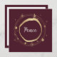 Divulgue a mensagem de paz nesta época de festas. Bela estrela dourada moderna rodeia a palavra Paz. Fundo vermelho. Adicione sua mensagem pessoal. Cartão perfeito para enviar a familiares e amigos para que saibam que você está pensando neles durante a época de festas.