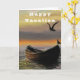 Cartões de Férias Felizes com Barco ao Pôr do Sol no Mar - Pintura ASSINADA - Personalizável