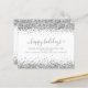 Cartão de Férias Feliz das Fronteiras de Silver do Orçamento. Um alternativo de 4,5 pol x 5,6 pol com preço orçamentário, em um STOCK CARD SEMI-GLOSS de 110 lb, que é similar em espessura a um cartão postal. Os envelopes são um extra opcional e são ligeiramente maiores que o tamanho da placa. Personalize facilmente o texto para seus detalhes.