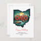 Celebre a estação com esta festiva design de férias no Ohio. A trabalho de arte apresenta o contorno do Estado de Buckeye cheio de uma cena de inverno aconchegante — árvores verdes, paisagens de neve e um céu ensolarado. Barcos à vela na água realçam a conexão de Ohio ao Lago Erie ao Rio Ohio, enquanto a ousadia com caracteres retrorreflectores ilustra orgulhosamente o OHIO para um toque clássico de orgulho estatal. Uma maneira única de honrar o seu estado de origem ou compartilhar uma conexão regional durante os feriados. Envie desejos de feriado com este Cartão-postal de Férias personalizável, com a capacidade de adicionar seu nome de família e ano.