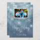 Cartão de Férias Moderno Azul e Prata com Flocos d