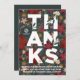 Este cartão festivo de feriado empresarial apresenta um fundo floral e verde de inverno com grandes OBRIGADOS. A frente também tem um ponto para o logotipo de empresa e para a mensagem do obrigado. A parte traseira apresenta uma foto da empresa, um logotipo e espaço para uma mensagem adicional.