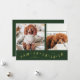 Cartão-modelo de fotografia de feriado mínimo e moderno com 2 fotos do seu animal de estimação na frente com um texto de tipografia divertido que diz "Paw-La-La-La-La." Você também pode adicionar outra imagem e mensagem no verso. O fundo é verde.