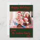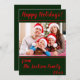 Cartão de Feriado Plano De Foto Da Família Feliz Feriados. Feliz cartão com fotos de Férias em verde com texto vermelho na frente do cartão. Personalize as palavras ao seu estilo. A placa apresenta caligrafia de script na frente e no tipo de serif simples na parte traseira. Mande um torcida de férias para seus entes queridos com uma foto de família para que sua família e amigos possam ver como você e seus filhos estão este ano. Melhore o dentro de mensagens para refletir o seu próprio estilo.