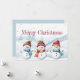 Mande uma alegria de inverno quente com este cartão de Natal plano, com três bonitinhos de neve em lenços coloridos e chapéus contra uma paisagem de inverno nevada. A frente lê Feliz Natal em letras festivas vermelhas, enquanto a parte de trás inclui sua mensagem de feriado personalizada: Da nossa pequena equipe gelada à sua — que suas férias sejam felizes e brilhantes! Enviando abraços quentes e desejos de férias. Uma escolha encantadora para amigos, familiares e colegas de trabalho que adoram designs de férias brincalhonas.