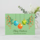Para quem gosta de um visual de Natal mais contemporâneo, Christmas Floral e Ornament é para você. Este design apresenta cores e desenhos de Natal não tradicionais. A folhagem floral tem um raminho de frutas vermelhas laranja e os enfeites são verde-azulado, laranja e verde-limão. O texto pode ser personalizado. No verso do cartão há uma caixa de texto que permite adicionar sua própria mensagem de Natal. Se preferir, você pode excluir a caixa e escrever sua mensagem.