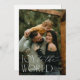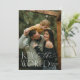 Um cartão de Natal simples e elegante com tipografia moderna serifada e de caligrafia com a frase religiosa "alegria ao mundo" sobre sua foto favorita. Espaço para uma foto adicional e personalização estão disponíveis no verso do cartão.
