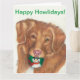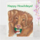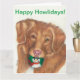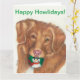 Cartão de férias com um Retriever de Pato da Nova Scotia segurando um enfeite de Natal. Todos os lucros beneficiam o esforço Toller Rescue Inc para apoiar os Tollers ucranianos e seu povo.