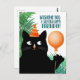 Cartão festa de aniversário com gato preto, plantas e balão. ★ Por favor, verifique a coleção correspondente para COORDENAR ITENS.¨¨¨.