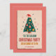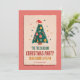Um cartão festivo de Natal, com uma árvore festiva decorada com ornamentos, canas doces e um chapéu de Papai Noel, perfeito para celebrar o feriado.