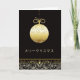 This elegant Christmas card features a golden glass ornament or bauble and golden swirls. Text on front reads:メリークリスマス = merry Christmas in Japanese