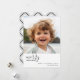 Feliz e Cartões de natal brilhante com desejos de feliz ano novo. Uma foto grande cobrir a maior parte da frente da placa. Para obter melhores resultados, recorte sua foto em um quadrado antes de carregar. A parte traseira da placa inclui um padrão de xadrez em preto e cinza.
