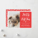2022 foi um "Pouco menos de um Ano Ruff"! Este cartão com fotos engraçado sobre o tema feriado apresenta uma foto do seu filhote adjacente ao texto moderno do script manuscrito e do texto personalizado que você pode personalizar com uma mensagem personalizada de feriado e de ano novo, o nome do seu cachorro de estimação e seu sobrenome/família. Design de tipografia simples e minimalista inclui um fundo vermelho e sotaques bonitos de impressão de pata.