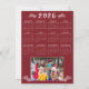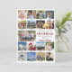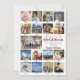 Modern, unique customizable 2025 Christmas holiday season greeting card featuring an easy-to-upload photo collage template for 17 pictures with captions or titles on the front and the year 2025 with your custom title and greeting (the sample shows A YEAR OF BLESSINGS and HAPPY HOLIDAYS) in modern hand lettered script typography shown in a customizable crimson red color you can change to coordinate with your photos. The back side offers a useful 2026 year-at-a-glance calendar for year-round use and one photo. ASSISTANCE: For help with design modification or personalization, color change, resizing or transferring the design to another product, contact the designer BEFORE ORDERING via the Zazzle Chat MESSAGE tab below or email makeitaboutyoustore@gmail.com.