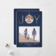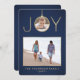 Comemore as alegrias simples dos feriados e compartilhe duas de suas fotos favoritas com um elegante cartão de Natal azul e azul-marinho dourado. O texto nesta modelo é fácil de personalizar para incluir qualquer texto, como Feliz Natal, Feliz Natal, Saudações de Sábios, Animações ao Ano Novo etc. (DICA DE IMAGEM: Uma maneira de centralizar uma foto exatamente como você quer é recortá-la antes de ser carregada no site do Zazzle.) Design apresenta um fundo azul escuro ombre, aparência metálica luxuosa ornamento JOY, nome minimalista moderno, tipografia de estilo manuscrito chic e duas fotos de sua escolha. Observe que o ouro é impresso a cor, não a folha. A família e os amigos adorarão mostrar este cartão personalizado na moda.