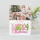 Cartão De Festividades 2 Photo Pink Green Bow Tree Merry Christmas