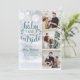 Um design de férias de colagem de 3 fotos elegante para você personalizar com suas fotos favoritas em molduras douradas, mensagem, nomes e ano. O verso apresenta flocos de neve caindo. Criado por Thisisnotme©