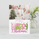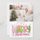 Cartão De Festividades 3 Photo Pink Green Bow Tree Merry Christmas