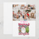 Uma reviravolta ousada na claque clássica — esta design de Natal "Feliz e Brilho" brincalhão apresenta padrões modernos, em preto e branco, Papais noeis cor-de-rosa, sotaques canaviais doces e uma doce árvore pastel com um arco bolinhas. É perfeito para famílias que gostam das suas férias um pouco mais saciosas e muito mais divertidas. Personalize com duas fotos festivas e seu nome de família para uma festa de Natal alegre e destacada.