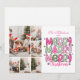 Celebre a temporada em estilo alegre com este cartão de festas vibrante com uma design empilhada de "Feliz Feliz Natal" em pinks festivos e verdes. Padrões divertidos como xadrezes, bolinhas e listras acrescentam uma torção encantadora e moderna. A seção superior inclui espaço para duas fotos favoritas da família, enquanto o texto personalizável permite adicionar seu nome de família e o ano para um toque pessoal. Uma maneira doce de enviar desejos calorosos e lembranças para amigos e entes queridos.
