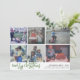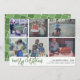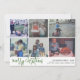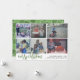 Design FRONT: Uma colagem de 6 fotos em uma grade simples para destacar muitos fotos do ano passado. A grade de fotos inclui 4 fotos quadradas e 2 fotos horizontais. Uma busca moderna por um cartão com fotos de férias com sotaques verdes de abacate e "natal alegre" em uma fonte grande e tradicional. O fundo é branco. Design de trás: o design de trás inclui um padrão de bloco em tons de verde. Você pode mudar essa cor na área de design avançado.