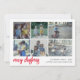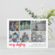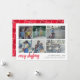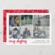 Design FRONT: Uma colagem de 6 fotos em uma grade simples para destacar muitos fotos do ano passado. A grade de fotos inclui 4 fotos quadradas e 2 fotos horizontais. Uma busca moderna por um cartão com fotos de feriado com sotaques vermelhos e "natal alegre" em uma fonte grande e tradicional. O fundo é branco. Design de trás: o design de trás inclui um padrão de bloco em tons de vermelho. Você pode mudar essa cor na área de design avançado.
