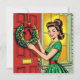 A sweet Christmas card that features a retro illustration of a mid-century woman hanging a holiday wreath on the front door. This card offers a nostalgic vintage vibe You can add a customized holiday greeting on the back or leave the little whimsical poem we put.