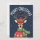 Merry Christmas Deer Illustration With Antlers, Red Sweater, Green Scarf, Holiday Theme Card