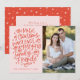 Envie cartões de natal mágicos para amigos e familiares com nosso cartão festivo de fotos. A frase "A magia do Natal nunca acaba, seus maiores presentes são família e amigos" é exibida em um roteiro laranja, manchado, com um fundo rosa claro e claro. Personalize a frente do cartão de feriado bonito adicionando seu nome, ano e foto. A placa reverte para incluir sua mensagem personalizada em dentro de texto laranja de um quadro de retângulo embutido. O fundo apresenta um padrão de estrelas e pontos embaçados.