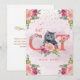 Um gato simpático rodeado por flores delicadas. O presente perfeito! Brilho dourado simulado.