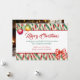 A pretty Christmas card in red, green and and off white with bows and ornaments and a sweet whimsical holiday saying. On the back you can you add your favorite family photo.