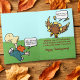 Esta carta hilária de Ação de Graças captura o caos divertido do feriado! Apresentando uma criança determinada perseguindo um peru rápido com um diálogo lúdico, ele certamente trará sorrisos e risos. Dentro, uma troca engraçada e um desejo de feriado quente completam a carta perfeita para amigos e familiares. Deseje-lhes um cheio de riso de Ação de Graças, bons tempos, e talvez um peru que não fuja!