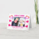 Este design de cartão de saudação de feriado do Dia dos Namorados moderno e elegante apresenta pirulitos em forma de coração coloridos e fofos com pincelada aérea e coração rosa e branco sobre fundo branco. Tipografia de letra rosa "ABRAÇOS & BEIJOS e XOXO" com foto e nome da família, verso com padrão de pirulito fofo sobre fundo branco. Você pode facilmente alterar a foto, nome, fontes e cor clicando em opções personalizadas.