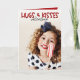Deleite seus amigos e familiares com um cartão de dia dos namorados fotográfico fofo com uma foto de seu filho, seu animal de estimação ou outra foto da família. O texto caprichoso "Abraços e Beijos de Dia dos Namorados" decora a parte superior da frente do cartão. Por dentro, você encontrará um padrão de corações minúsculos brancos sobre um fundo vermelho vibrante. Um modelo de texto está incluído para personalizar com a mensagem e o(s) nome(s) desejados. Carregue a foto desejada no lugar da foto de amostra mostrada. Feliz Dia dos Namorados!