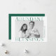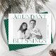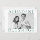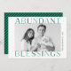 Cartão com fotos de férias colorido e moderno, com a expressão "Bênçãos Abundantes" em letras escuras e verdes claras alternadas. Personalize o cartão adicionando sua foto, nome e ano. A placa se reverte para exibir um padrão verde-claro e escuro striped.
