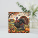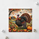 Uma cena de Arte Popular apresentando um majestoso peru selvagem cercado por itens tradicionais de colheita, emoldurado por folhagens de outono.