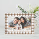 Aceite o encanto da época com o nosso cartão de Ação de Graças da Xadrez de Aquarela Russa, uma combinação perfeita de tradição e personalização. Apresentando uma foto horizontal moldada por um padrão de xadrez de aquarela marrom quente, esta design é sua canvas de criar um cartão de Ação de Graças verdadeiramente único. Adicione um toque pessoal personalizando a frente da placa com sua própria saudação e nome sinceros.