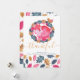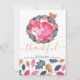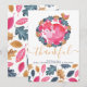 Carteira de Ação de Graças de Ricaso Este delicioso cartão de feriado apresenta um dentro cor-de-rosa-dormir de uma folha de madeira e coroa, com um pássaro pequeno próximo - com um delicioso detalhe de carateres de rolagem em ouro com a palavra "agradecido" - e um padrão azul, rosa, verde e dourado para a frente e para trás