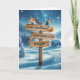 Um cartão de Natal para você personalizar adicionando um nome. Uma encantadora cena de Natal com robins alegres tocados num cartaz coberto de neve, espalhando calor e alegria sazonal em meio a uma terra maravilhosa de inverno. Em um cenário de neve serena, robins amigáveis descansam em um poste de sinalização vintage, incorporando o calor da união durante o feriado.
