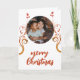 Cartão de Natal de Férias Feliz Natal com Foto Personalizada da Família Folhagem Vermelha. Adorável folhagem laranja-vermelha. Personalize o cartão com a foto da sua família.