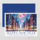 Cartão Personalizado Aguarela Fogos de Ano Novo Nova York