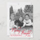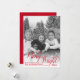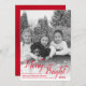 Este cartão de Natal é simples e minimalista, mas festivo. Apresenta uma foto em preto e branco em toda a moldura com uma escrita em caligrafia vermelha que diz "Alegre e Brilhante". Há espaço para os nomes da sua família e o ano. Uma maneira maravilhosa de enviar saudações de Natal.