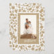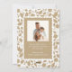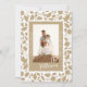 Joy To The World Religerian Floral Christmas Photo Holiday Card O cartão de Natal Floral do Mundo apresenta a sua fotografia favorita com um elegante quadro floral de ouro moderno com pombos de paz com o texto "Joy to the World the Lord's veio" na elegante tipografia moderna da escrita e personalizado com o seu nome familiar no moderno roteiro de caligrafia branca. No verso, adicione uma foto adicional e seu texto personalizado. Perfeito para família e amigos no Natal e feriados. Projetado pelo Evco Studio www.zazzle.com/store/evcostudio