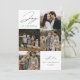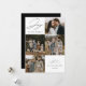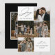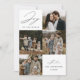 Cartão moderno de férias com a frase "Alegria ao Mundo" em elegante letra cursiva preta com fundo branco. A frente do design apresenta 4 das suas fotos favoritas da família dispostas em um layout de colagem. Personalize a frente do cartão de férias com várias fotos com o nome da sua família e o ano. O cartão se inverte para exibir uma foto adicional.