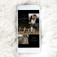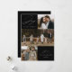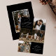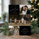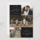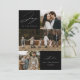 Cartão de feriado moderno com a frase "Alegria ao Mundo" em elegante escrita branca sobre fundo preto. A frente do design apresenta 3 das suas fotos favoritas da família dispostas em um layout de colagem. Personalize a frente do cartão de Natal com várias fotos com o nome da sua família e o ano. O cartão reverte para exibir uma foto adicional.