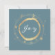 Divulgue a mensagem de alegria nesta época de festas. Belo design moderno de estrela dourada envolve a palavra Alegria. Fundo azul gelo. Adicione sua mensagem pessoal. Cartão perfeito para enviar a familiares e amigos para que saibam que você está pensando neles durante a época de festas.